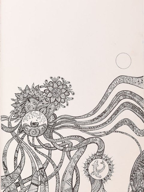 Black-hooded Oriole and Mandala Patterns
